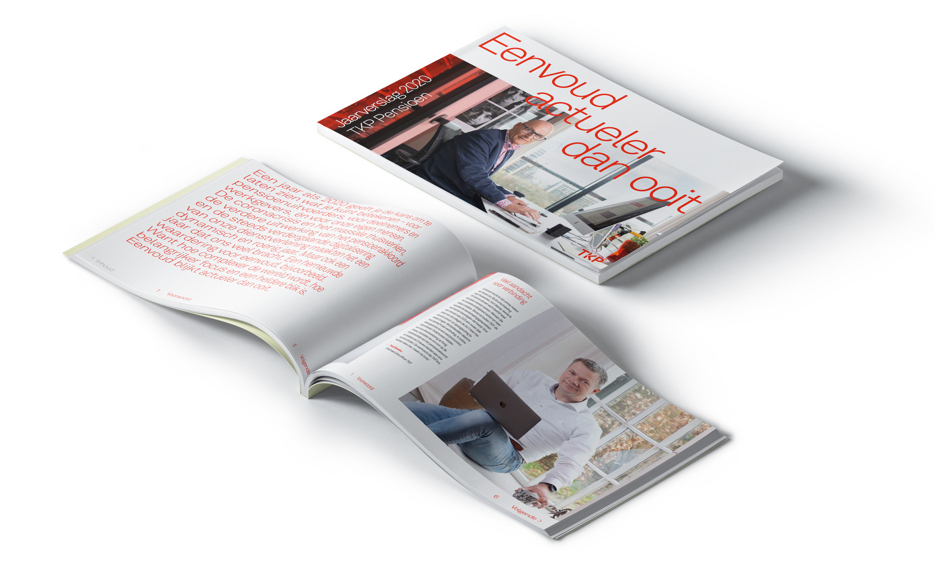 Jaarverslag TKP Pensioen. TKP’ers en klanten op een oprechte, herkenbare manier laten zien in de context van hun ‘thuiswerkplek’. Passend bij een verslag over het afgelopen jaar.